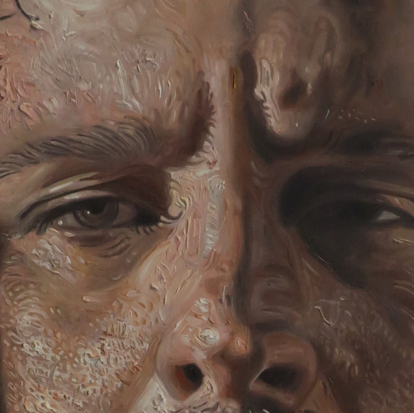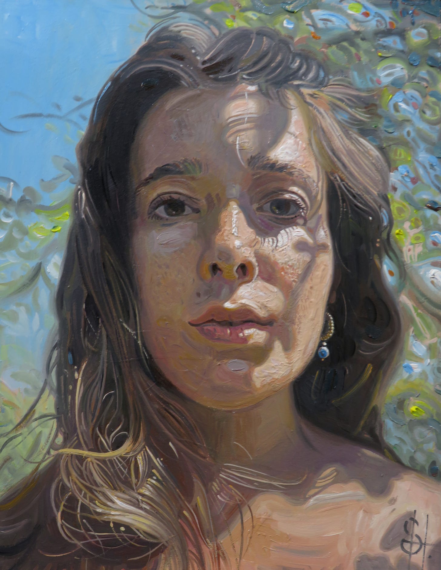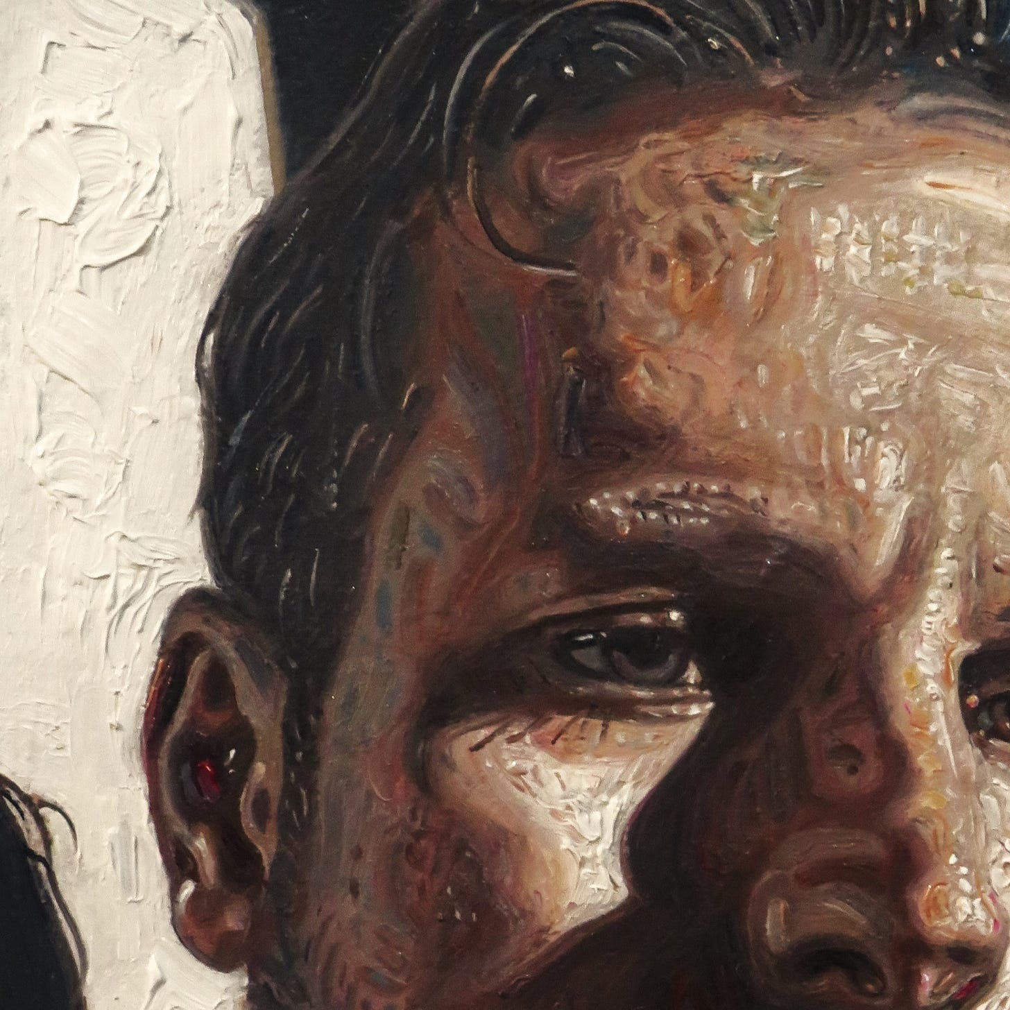I love working with interesting plains of light and shadow within my portrait compositions. This can be achieved by using sunlight through window blinds, railings and trees cast across the face. Not only can this element bring an extra narrative layer but can allow me to really shovel the paint on in the highlights. I noticed painters like Rembrandt and Van Dyke really go to town with the paint application on the main highlights so it’s always good to take influence from other work that inspires.