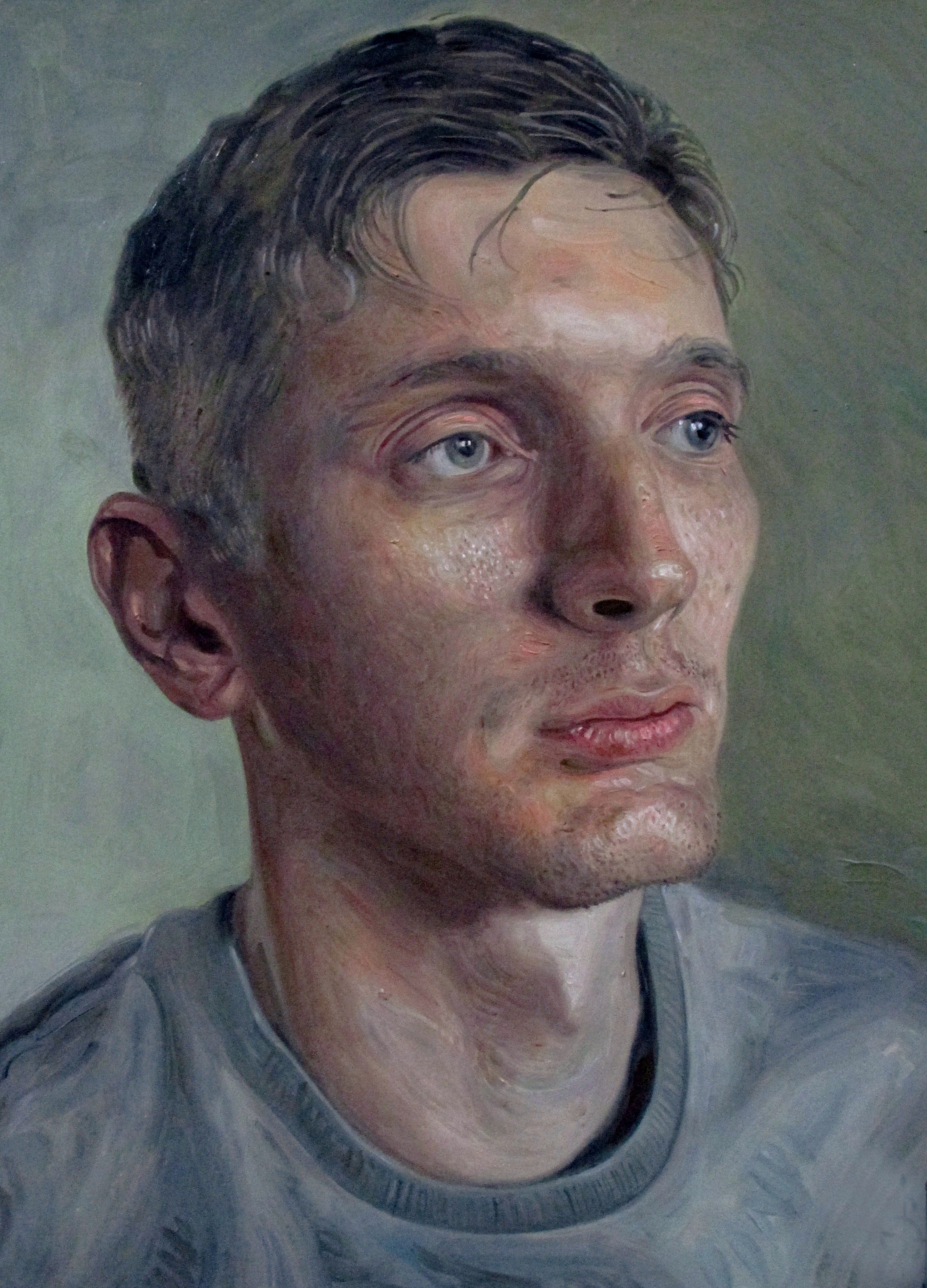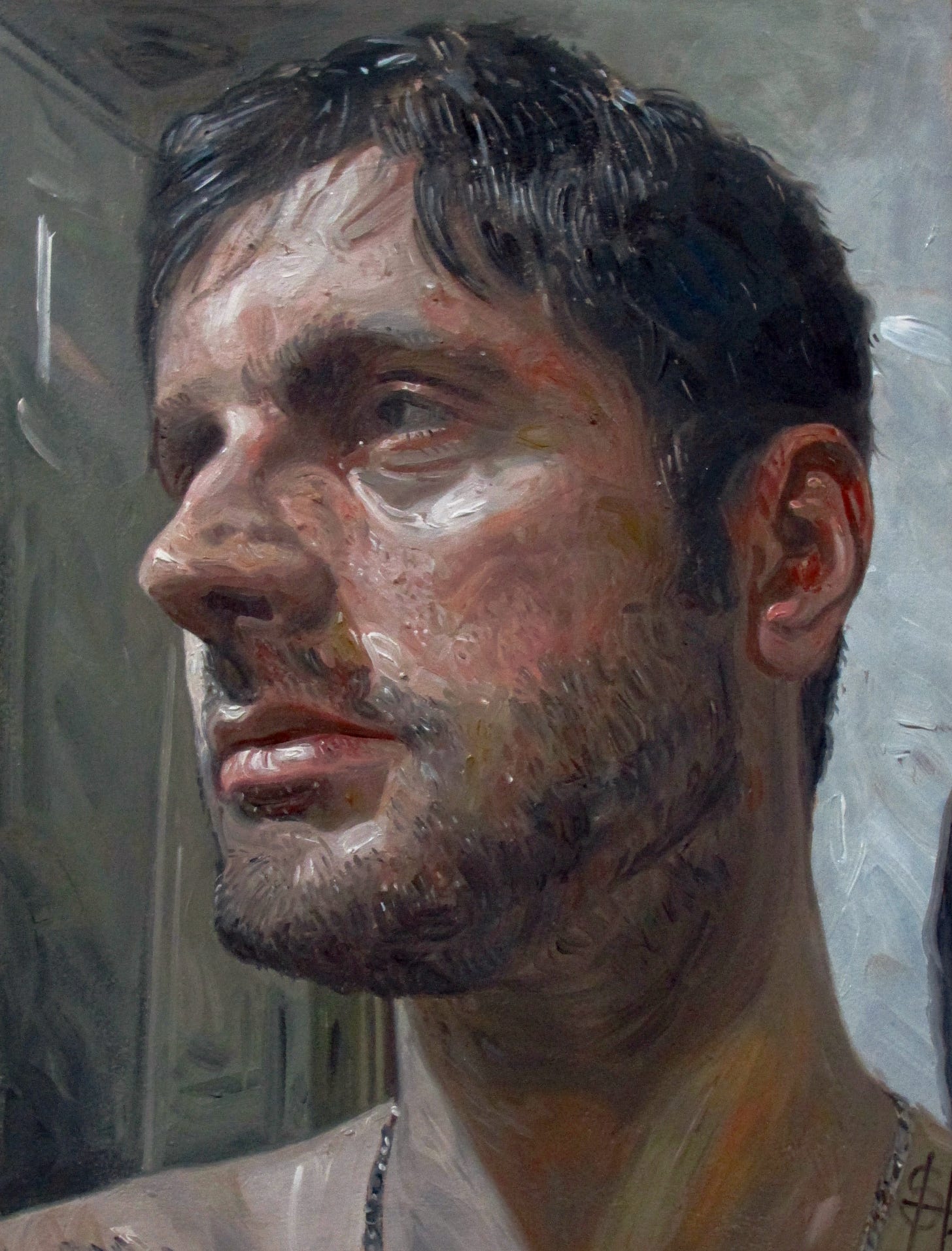 'Another way to keep my paintings process interesting is to start and finish the piece in one day, 'alla prima'. This works well for me as I paint from photos and therefore don't have light that changes with the day. I often prep my board/canvas the day before with drawing and quick tonal acrylic underpainting. But the moment the oil paint comes out, I limit that process to one day. The wet-on-wet approach gives a nice fluid feel and really teaches me to handle the paint with full confidence. Here is a good example above, 'Self Study’.